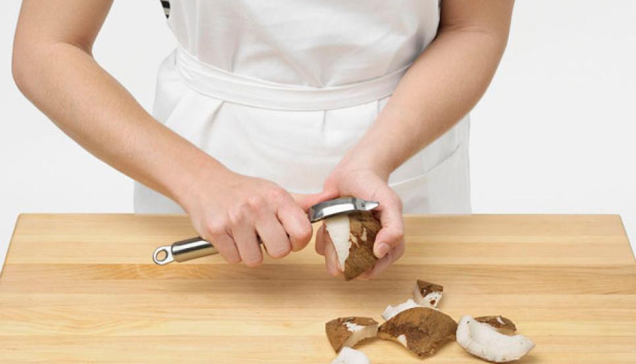 თეთრ ნაწილს თხელი ყავისფერი კანი დანით ან ბოსტნეულის სათლელით მოათალეთ.