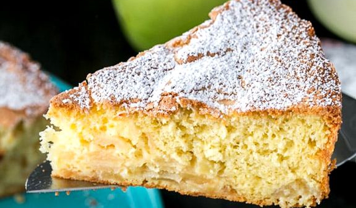 შეურიეთ დაჭრილი ვაშლი (გადაინახეთ ½ ჭიქა დაჭრილი ვაშლი), კარგად აურიეთ და ცომი ცხიმმოსმულ საცხობ ლანგარზე გადაიტანეთ. თავზე გადანახული დაჭრილი ვაშლი მოაყარეთ და აცხვეთ 170 C-ზე 1 საათით. თავზე უნდა გადაიბრაწოს. გამოიღეთ ღუმელიდან და ლანგარშივე 15 წუთით გააცივეთ. როცა ნამცხვარი ოთახის ტემპერატურისა იქნება, მოაყარეთ შაქრის პუდრა და გემრიელად მიირთვით!